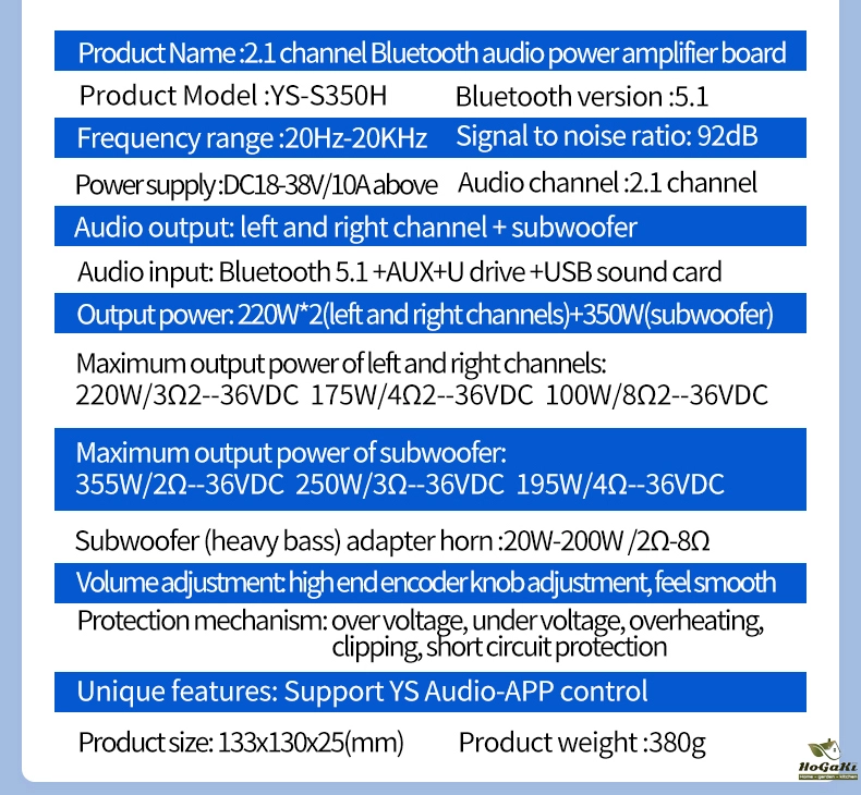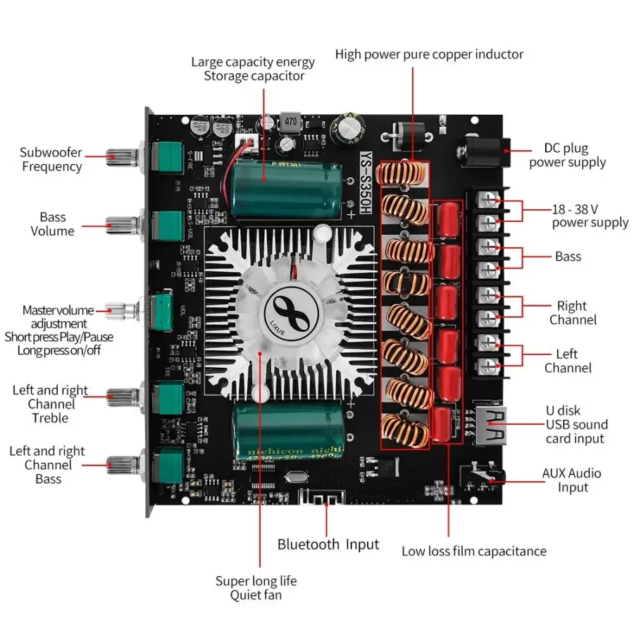Compared with other amplifier processes YS-S350H TPA3251 has a higherchip area. It also reduces crosstalk and improves sound quality.