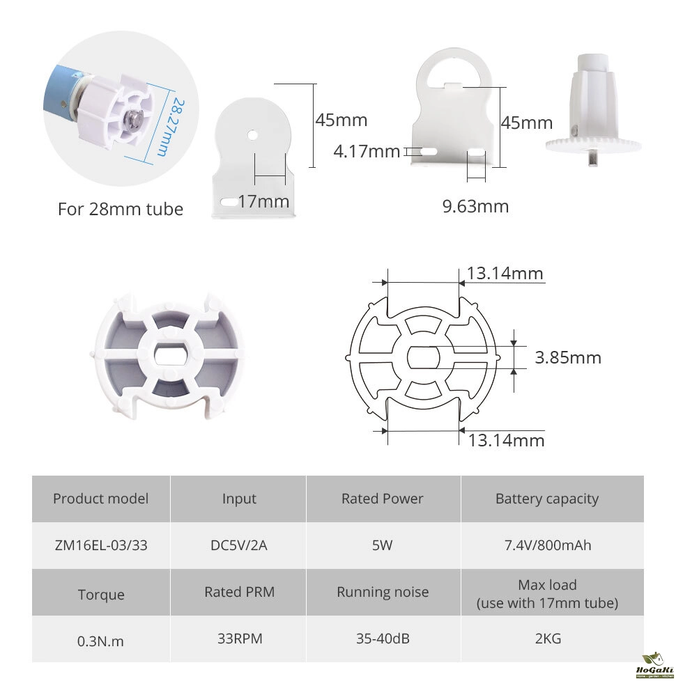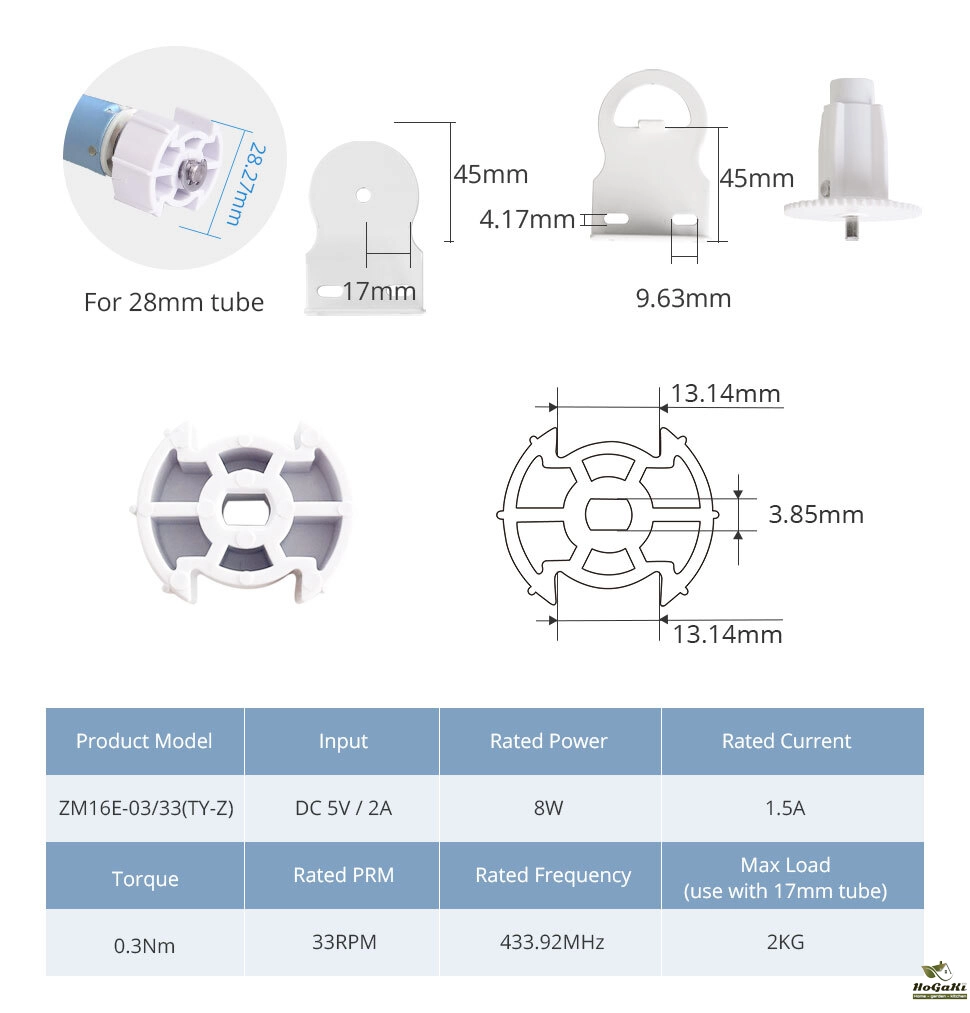 - Tubular motor for 17mm 25mm 28mm tube, carry up to 2kg / 2m roller shade.