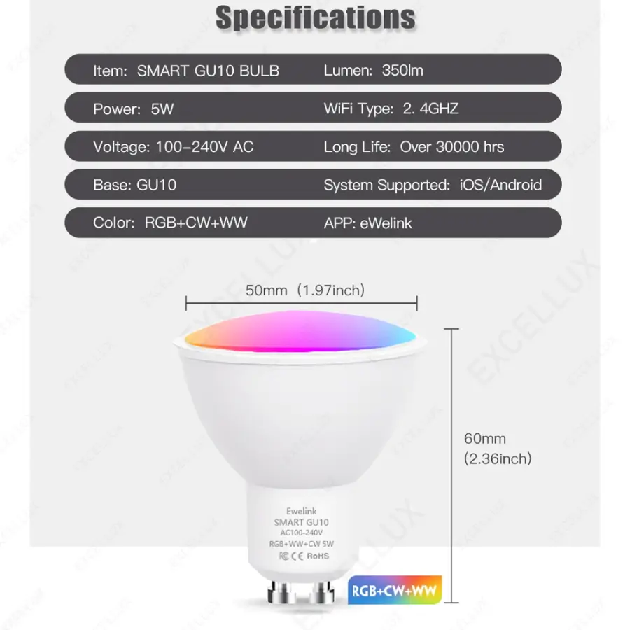 Type: Zigbee / WiFi Smart LED GU10 Spotlight Bulb