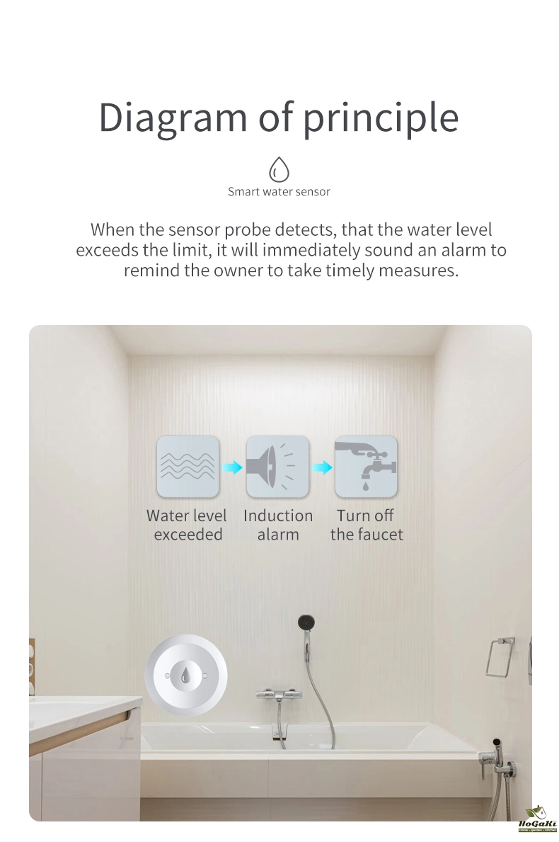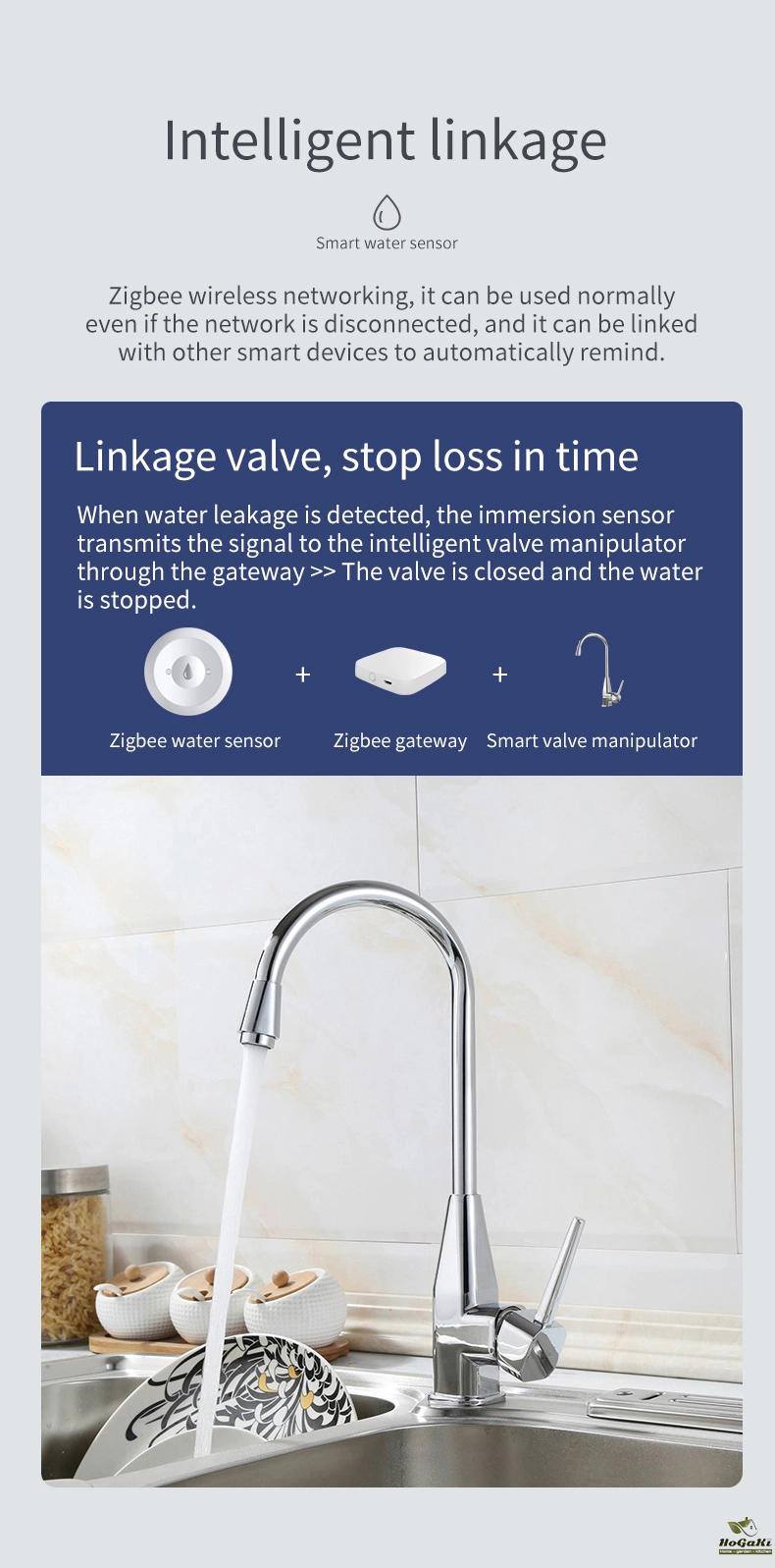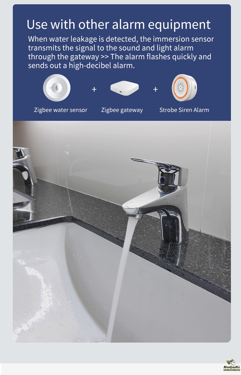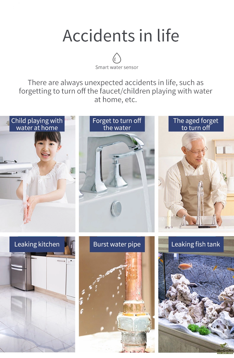 [Detection of new] using advanced detection module, real-time water induction. When water flows through the two poles of the probe, an alarm message is immediately sent to the Gateway.
