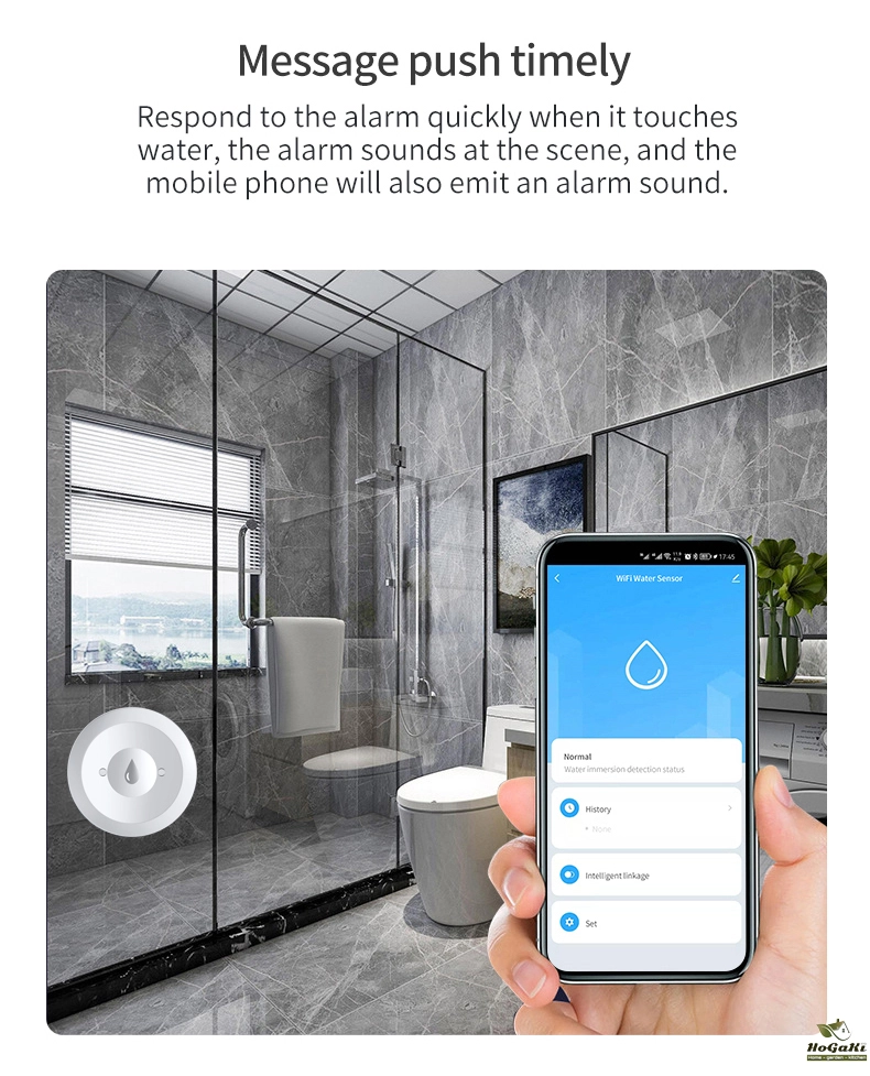 【Real-time detection】 The water immersion sensor can detect water leakage in the environment in real time. When water immersion is detected, the detector will send an alarm signal to the host and report the information to the user's mobile phone. When the water level at the detection point reaches 0.01M, the water intrusion sensor will report the water condition.
