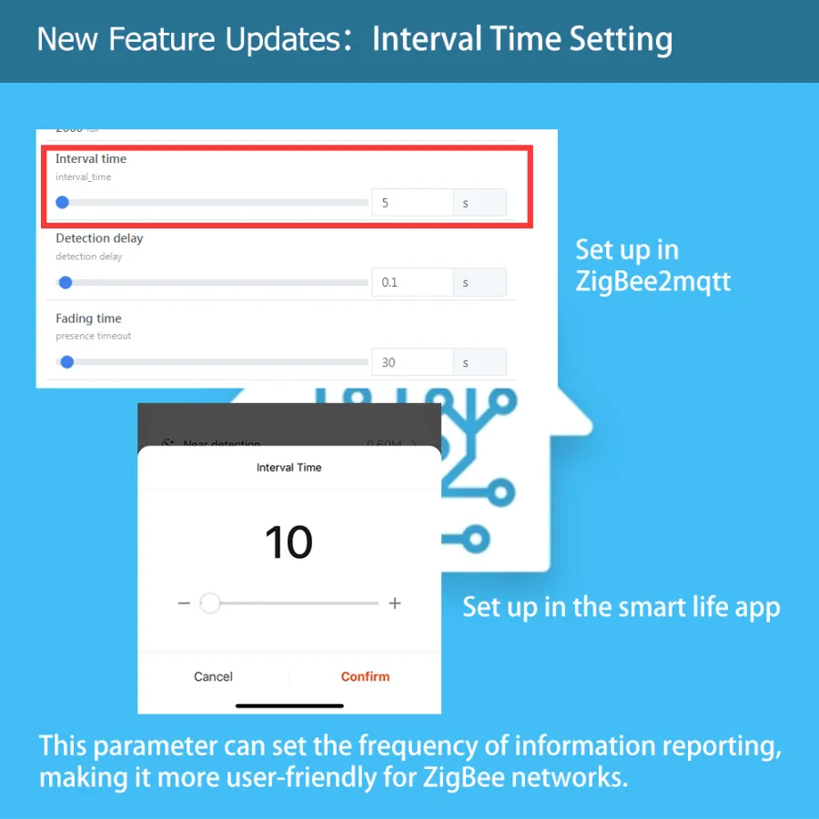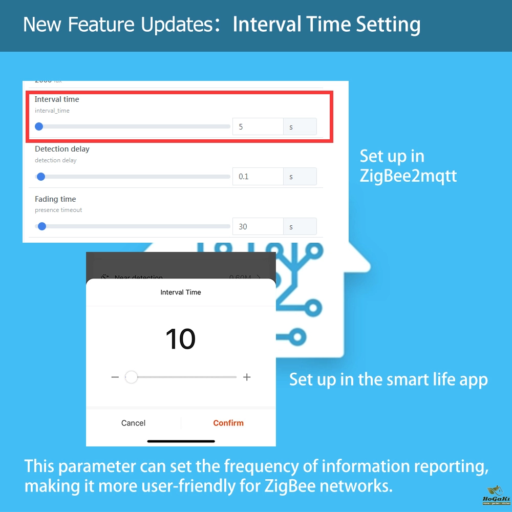 Are you still troubled by the large amount of data reported by other presence sensors? I believe you will like this feature, the new version supports setting data reporting interval time. Make your ZigBee network less noisy. And this feature does not affect real-time synchronization when the presence state changes.