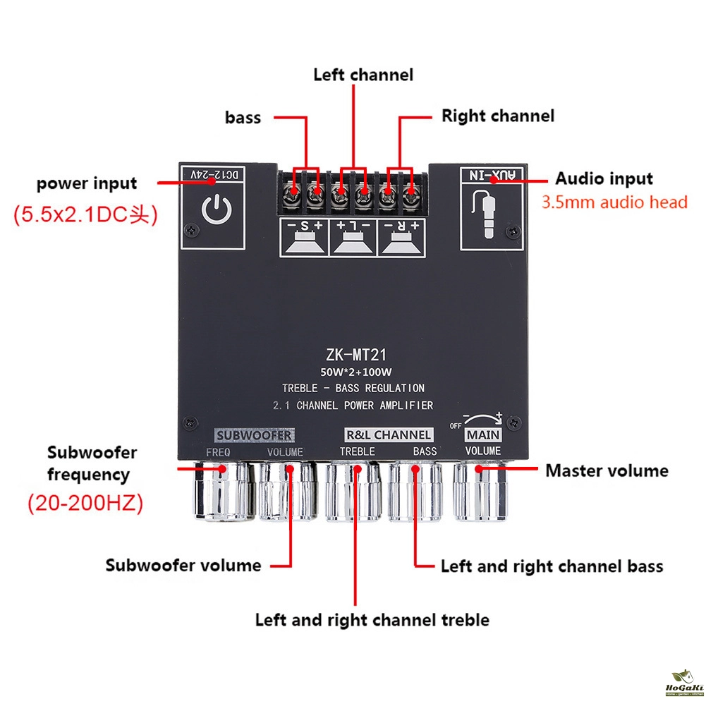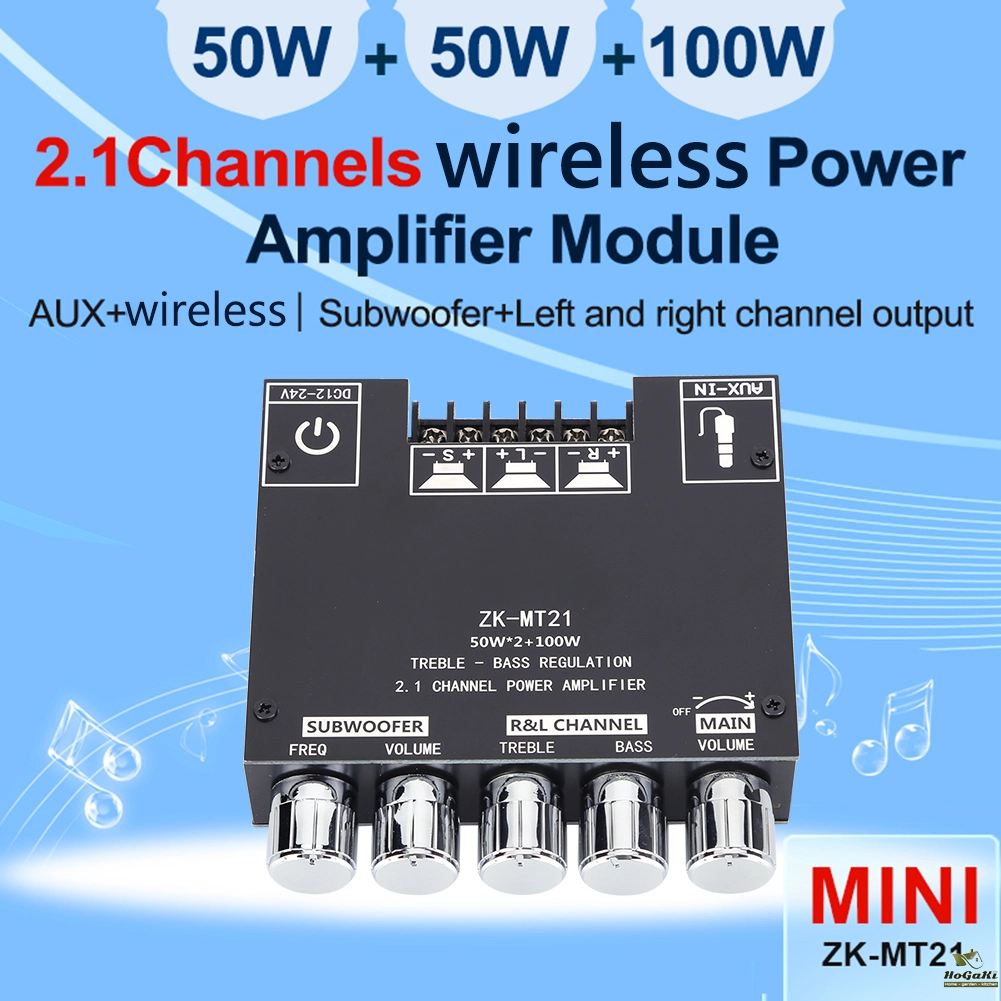ZK-MT21 2x50W+100W 2.1 Channel Subwoofer Digital Power Amplifier Board AUX 12V 24V Audio Stereo