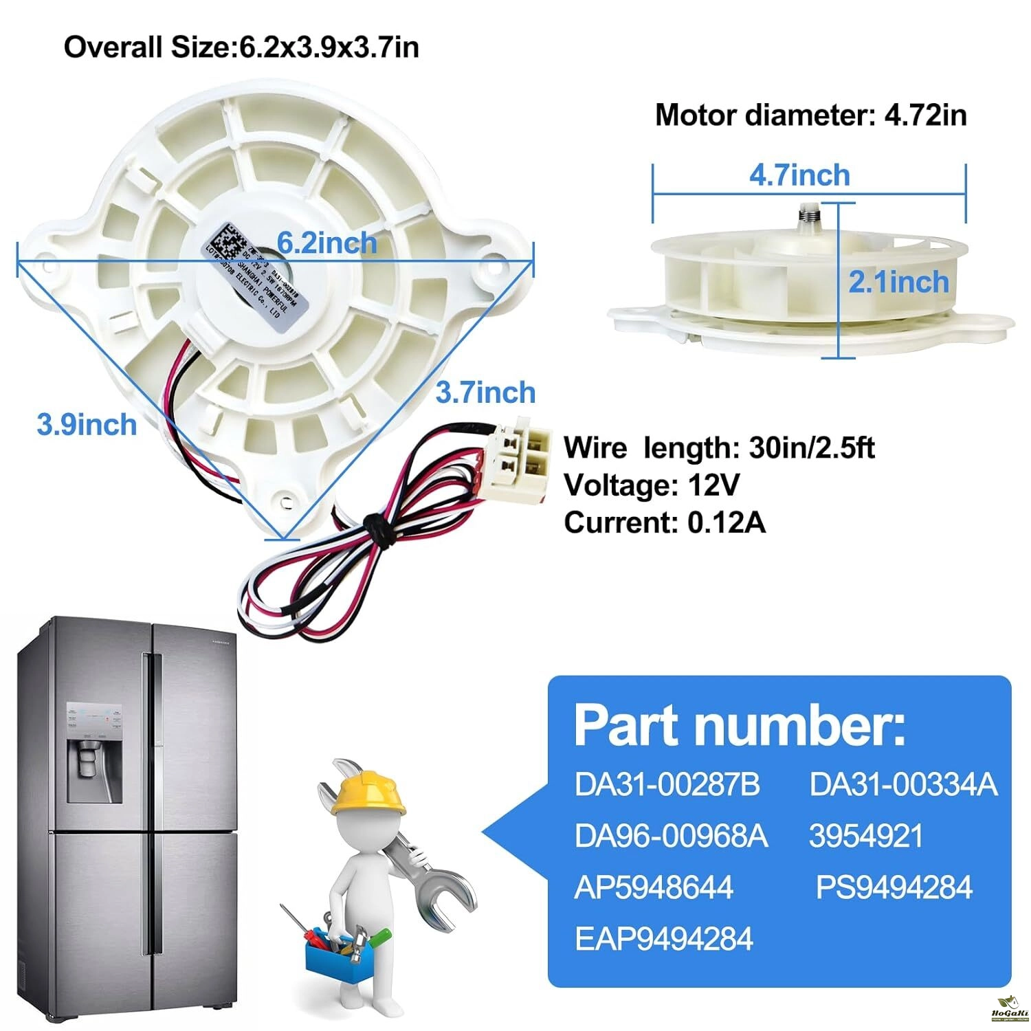 ✅【DA31-00287B Evaporator Fan Motor Replaces Part Number】ZWF-30-3, DA31-00287B,DA31-00334A,DA96-00968A, 3954921,AP5948644,PS9494284,EAP9494284.【NOTE: Please confirm the model and product appearance before purchasing.Please contact us if you are not clear the models, and we will help you.】,